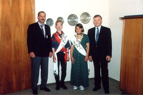v. l. Das Senioren-Königspaar Marichen Puls und Johann L. Ingwersen, Bürgermeister Herr Reichert, 2. v. rechts Bürgervorsteher Herr Hems