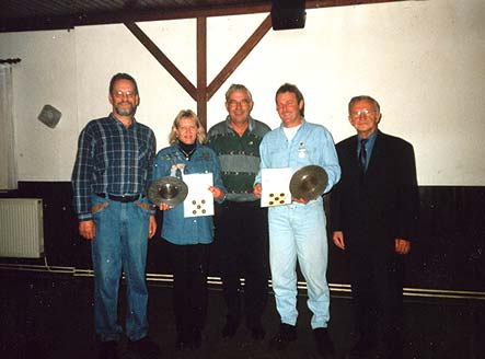 v.l. Schießwart Horst Hansen, Hella Hansen, 1. Vorsitzender Theodor Prenger,