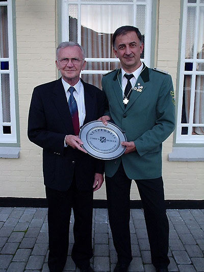 v.l. 1.Vorsitzender des Bredstedter Schützenvereins Johann L. Ingwersen, Gewinner des "Netzekreis-Ehrentellers" Walter Klang/Bredstedt