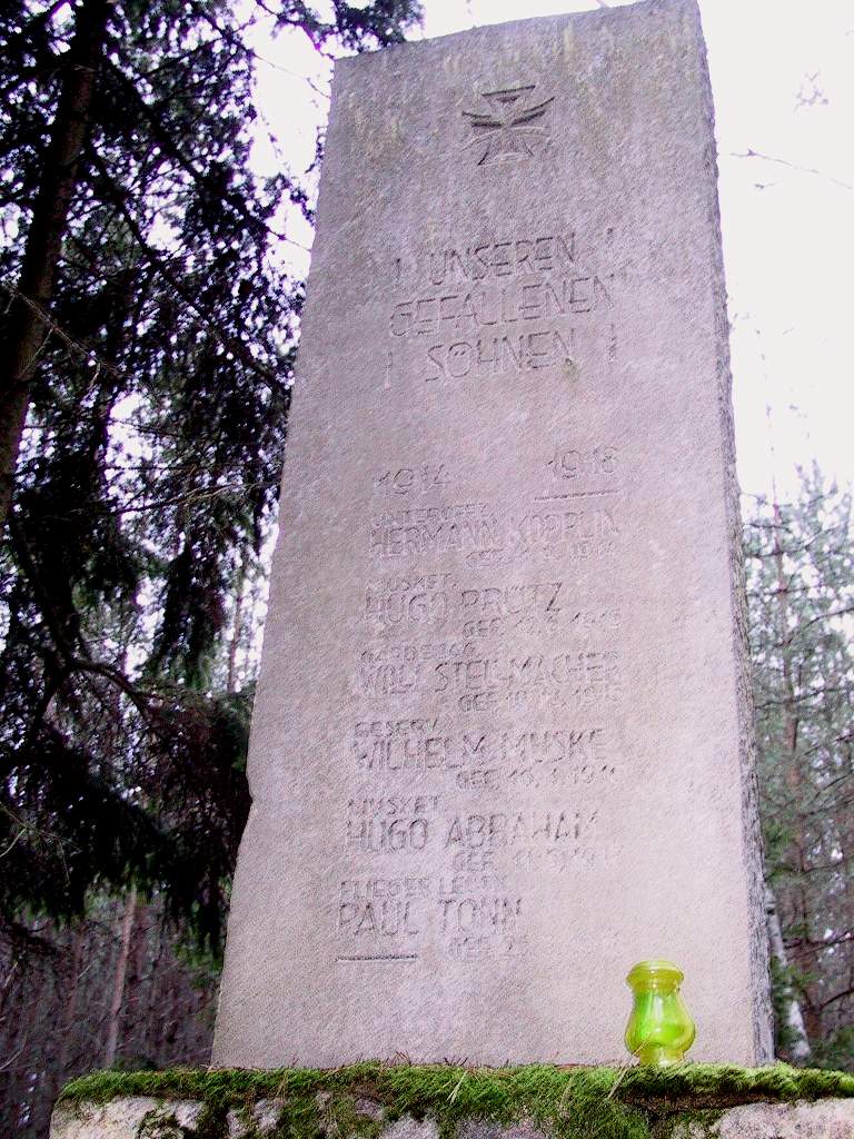 Diese beiden Bilder wurden mir von Andrzej Kotwicki aus Trzcianka (Schönlanke) per E-Mail zugesandt. Das Denkmal soll zwischen Smolarnia (Theerofen) und Przesieki (Wiesental) stehen. Wer kennt dieses Denkmal und wo steht es. Da es in einem recht guten Zustand ist, muß es ja gepflegt werden. Über eine Auskunft würde ich mich sehr freuen. Nach Auskunft von Frau Helga Klenk aus Groß Drensen am 29.04.2003 steht dieses Kriegerdenkmal in Dolfusbruch Kreis Deutsch-Krone an der Kreisgrenze zum Netzekreis östlich von Klein Drensen. |